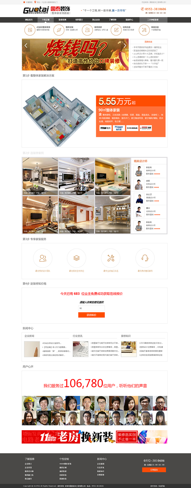 國泰裝飾入駐蚌埠后,在蚌埠裝飾市場上首次推出“38800整體家裝”服務(wù),是家裝行業(yè)新概念的領(lǐng)跑者與實踐者,為消費(fèi)者和蚌埠裝飾行業(yè)帶來了實惠與風(fēng)尚。