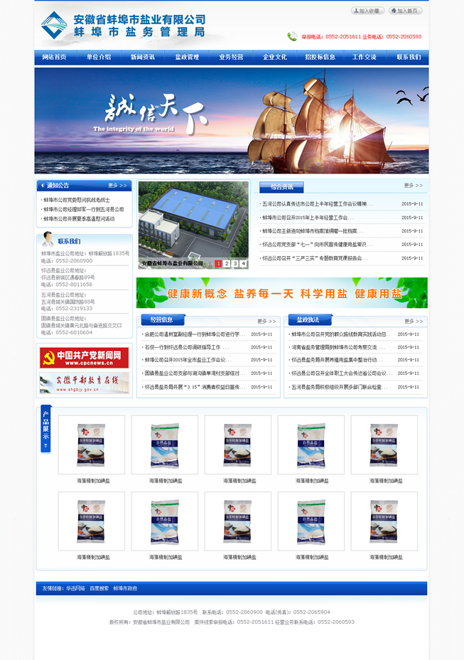 多年來,蚌埠鹽業(yè)認真貫徹落實國家《食鹽專營辦法》、《食鹽加碘消除碘缺乏危害管理條例》,始終以食鹽市場安全穩(wěn)定為天職,忠實履職,恪盡職守。一方面對全市鹽業(yè)市場進行鹽政監(jiān)管,嚴厲打擊鹽業(yè)違法犯罪,全力維護食鹽市場安全穩(wěn)定;另一方面負責組織開展食鹽專營,致力為消費者提供安全、優(yōu)質、放心的加碘食鹽,確保全市371萬人口的食鹽供應。與此同時,蚌埠鹽業(yè)主動適應市場需要,積極拓展非鹽經(jīng)營,在發(fā)展的道路上不斷深化改革,自主創(chuàng)新,產(chǎn)業(yè)結構轉型邁出堅實步伐,全區(qū)總資產(chǎn)已近8000萬元,現(xiàn)有經(jīng)營倉儲面積約1.5萬平米,在建倉庫1萬余平米。2014年實現(xiàn)銷售收入14762.69萬元,其中食鹽銷售4967.40萬元,非鹽銷售9795.20萬元、實現(xiàn)利稅1124.52萬元,經(jīng)濟社會效益居全省同行領先。先后榮獲全省鹽業(yè)系統(tǒng)先進單位五連冠、安徽省勞動保障誠信示范企業(yè)、安徽省衛(wèi)生先進單位、檔案管理考核安徽省一級單位、蚌埠市A級納稅信用單位、蚌埠市第十四屆文明單位等多項榮譽稱號。